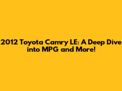 2012 Toyota Camry LE: MPG, Specs, And More!