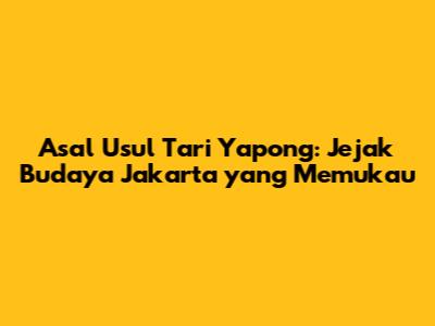 Tari Yapong, guys, adalah salah satu harta karun budaya yang berasal dari Jakarta. Yap, betul banget! Tarian ini bukan cuma sekadar gerakan indah, tapi juga punya sejarah panjang dan cerita yang menarik di baliknya. Jadi, buat kalian yang penasaran dari mana sih asal-usul tari Yapong ini, mari kita telusuri bersama-sama!