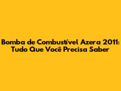 Bomba De Combustível Azera 2011: Tudo Que Você Precisa Saber