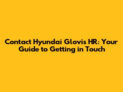 Contact Hyundai Glovis HR: Numbers, Emails & More!