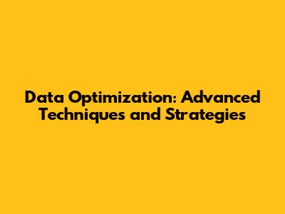 Data Optimization: Advanced Techniques And Strategies