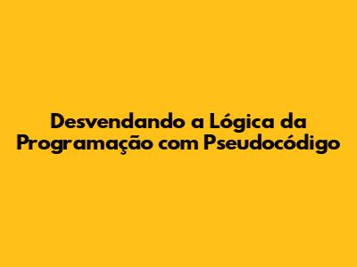 Desvendando A Lógica Da Programação Com Pseudocódigo