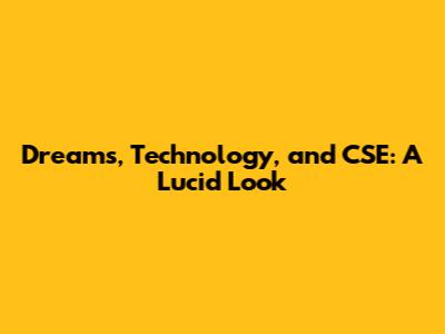 Dreams, Technology, And CSE: A Lucid Look