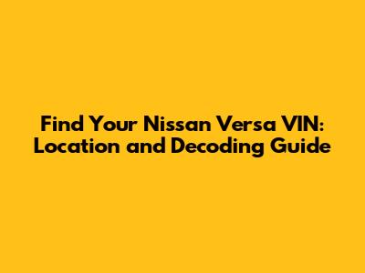 Find Your Nissan Versa VIN: Location And Decoding Guide