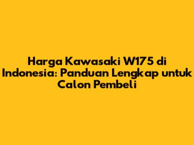 Kawasaki W175 telah lama menjadi primadona di kalangan pecinta motor klasik di Indonesia. Desainnya yang retro dipadu dengan performa yang handal menjadikannya pilihan menarik bagi mereka yang mencari pengalaman berkendara yang berbeda. Nah, guys, kalau kalian lagi kepikiran buat beli motor kece ini, artikel ini bakal kasih kalian semua info yang kalian butuhkan, mulai dari harga terbaru, spesifikasi, hingga tips-tips penting sebelum memutuskan untuk meminangnya. Yuk, simak ulasannya!