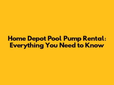 Home Depot Pool Pump Rental: Everything You Need To Know