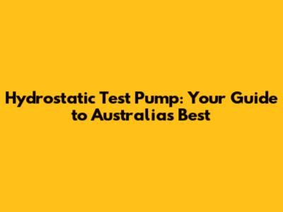Hydrostatic Test Pump: Your Guide To Australia's Best