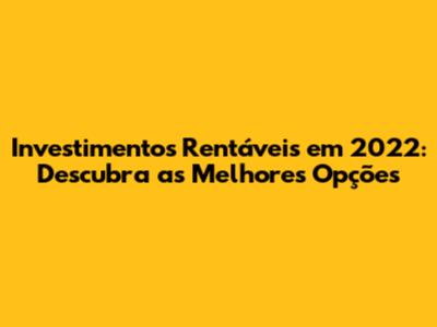 Investimentos Rentáveis Em 2022: Descubra As Melhores Opções