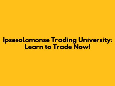 Ipsesolomonse Trading University: Learn To Trade Now!