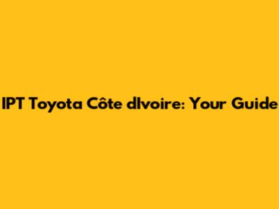 IPT Toyota Côte D'Ivoire: Your Guide