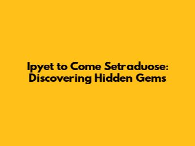Ipyet To Come Setraduose: Discovering Hidden Gems