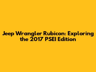 Let's dive deep into the PSEI2017SE Jeep Wrangler Rubicon, a vehicle that blends rugged capability with distinctive style. If you're a Jeep enthusiast, or just someone curious about special edition Wranglers, you're in the right place! We'll explore what makes this particular model year and edition stand out from the crowd, covering everything from its unique features to its off-road prowess. So, buckle up, and let’s get started!