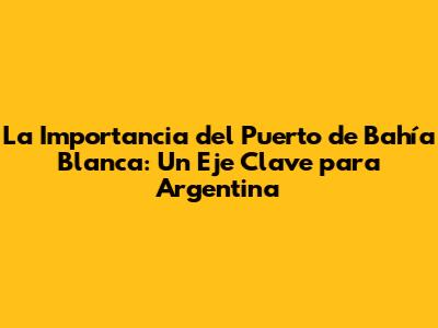 La Importancia Del Puerto De Bahía Blanca: Un Eje Clave Para Argentina