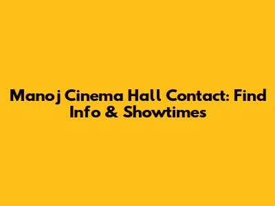 Manoj Cinema Hall Contact: Find Info & Showtimes