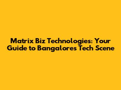 Matrix Biz Technologies: Your Guide To Bangalore's Tech Scene