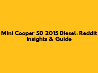 Mini Cooper SD 2015 Diesel: Reddit Insights & Guide