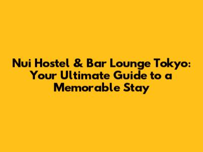 Nui Hostel & Bar Lounge Tokyo: Your Ultimate Guide