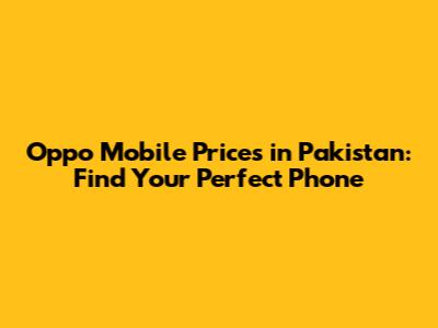 Hey guys! Looking for the best Oppo mobile price in Pakistan? You've come to the right place! We're diving deep into the world of Oppo smartphones, exploring the latest models, comparing prices, and helping you find the perfect phone that fits your needs and budget. Whether you're a tech enthusiast, a photography lover, or just someone looking for a reliable daily driver, Oppo has something for everyone. So, let's get started and unlock the amazing world of Oppo mobiles in Pakistan!