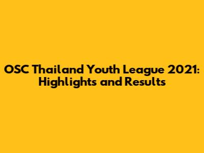 OSC Thailand Youth League 2021: Highlights And Results