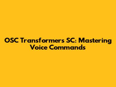 OSC Transformers SC: Mastering Voice Commands