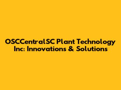 OSCCentralSC Plant Technology Inc: Innovations & Solutions
