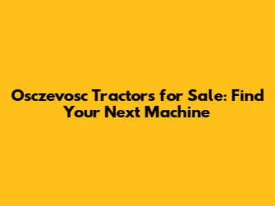 Osczevosc Tractors For Sale: Find Your Next Machine