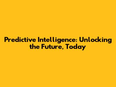 Predictive Intelligence: Unlocking The Future, Today