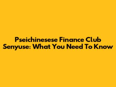 Pseichinesese Finance Club Senyuse: What You Need To Know