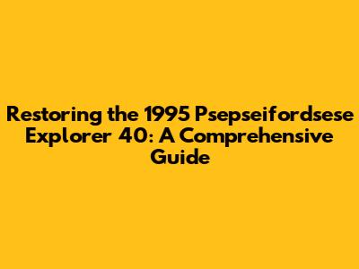 Restoring The 1995 Psepseifordsese Explorer 40: A Comprehensive Guide