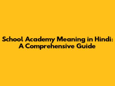 School Academy Meaning In Hindi: A Comprehensive Guide