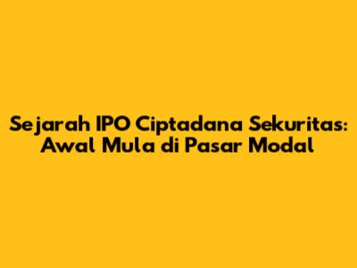 Mari kita bahas secara mendalam sejarah IPO Ciptadana Sekuritas. IPO atau Initial Public Offering adalah momen penting bagi sebuah perusahaan, menandai transformasi dari perusahaan privat menjadi perusahaan publik. Ciptadana Sekuritas, sebagai salah satu pemain utama di industri pasar modal Indonesia, tentu memiliki cerita menarik seputar IPO mereka. Artikel ini akan mengupas tuntas perjalanan Ciptadana Sekuritas menuju IPO, faktor-faktor yang memengaruhi keputusan tersebut, serta dampaknya bagi perusahaan dan investor.